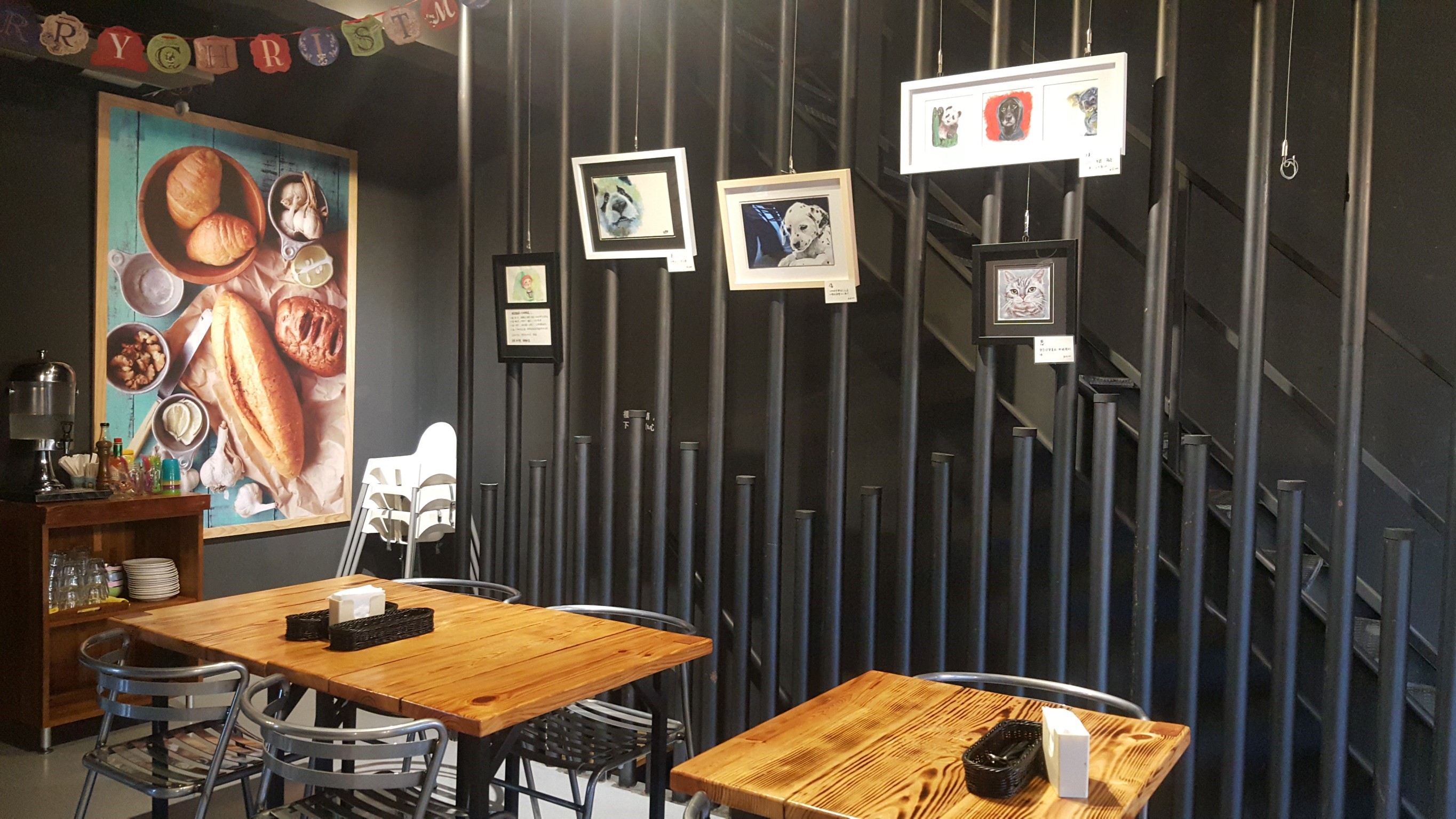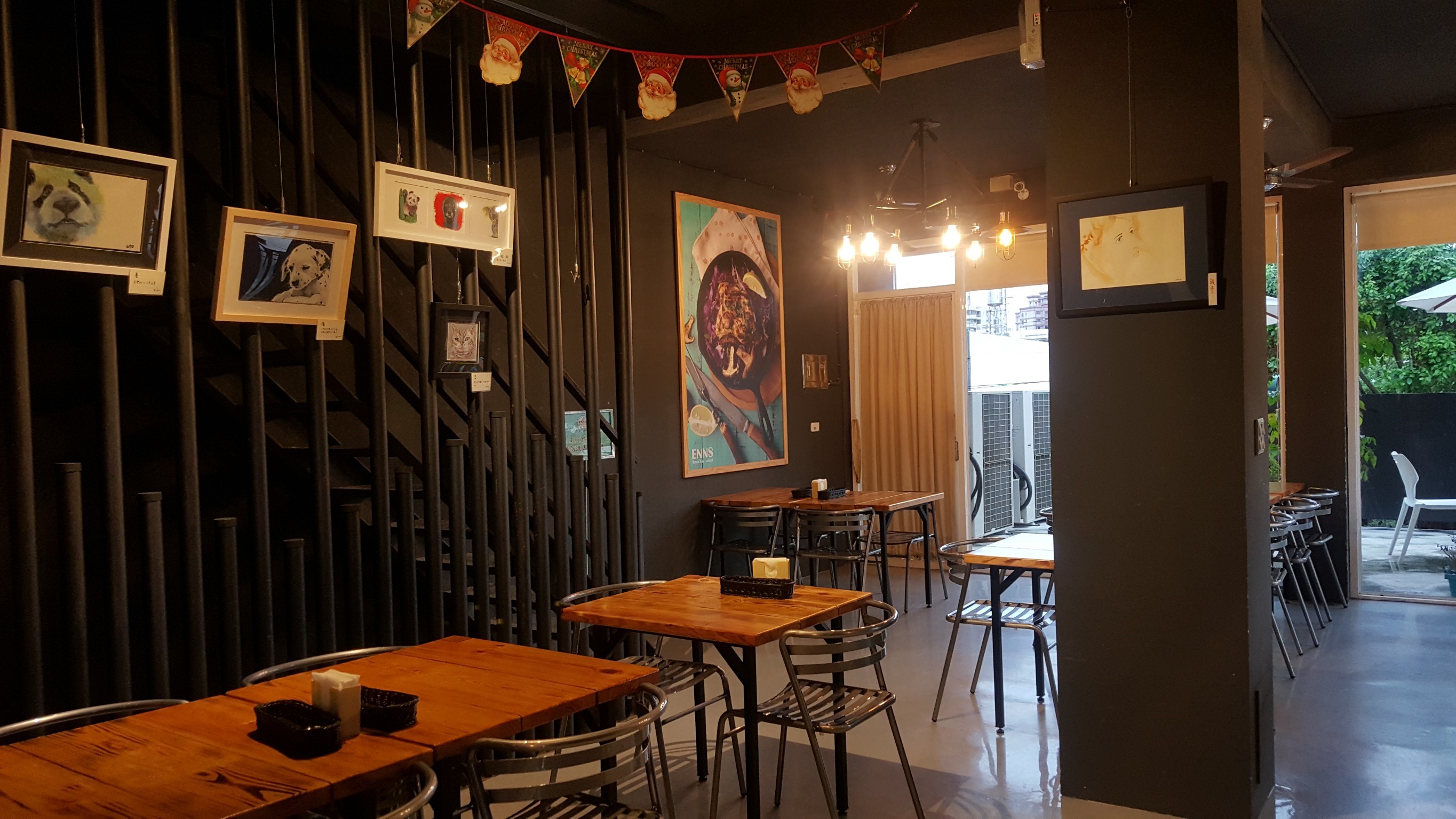 整家店帶有些粗曠、原木味、磚牆風格,可以從入口吧檯一眼看到內部廚房運作的狀況,牆壁上也掛著相當多的歐美特色的裝飾或畫作。