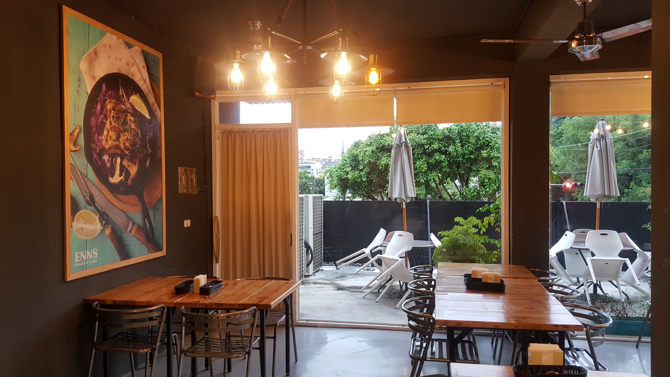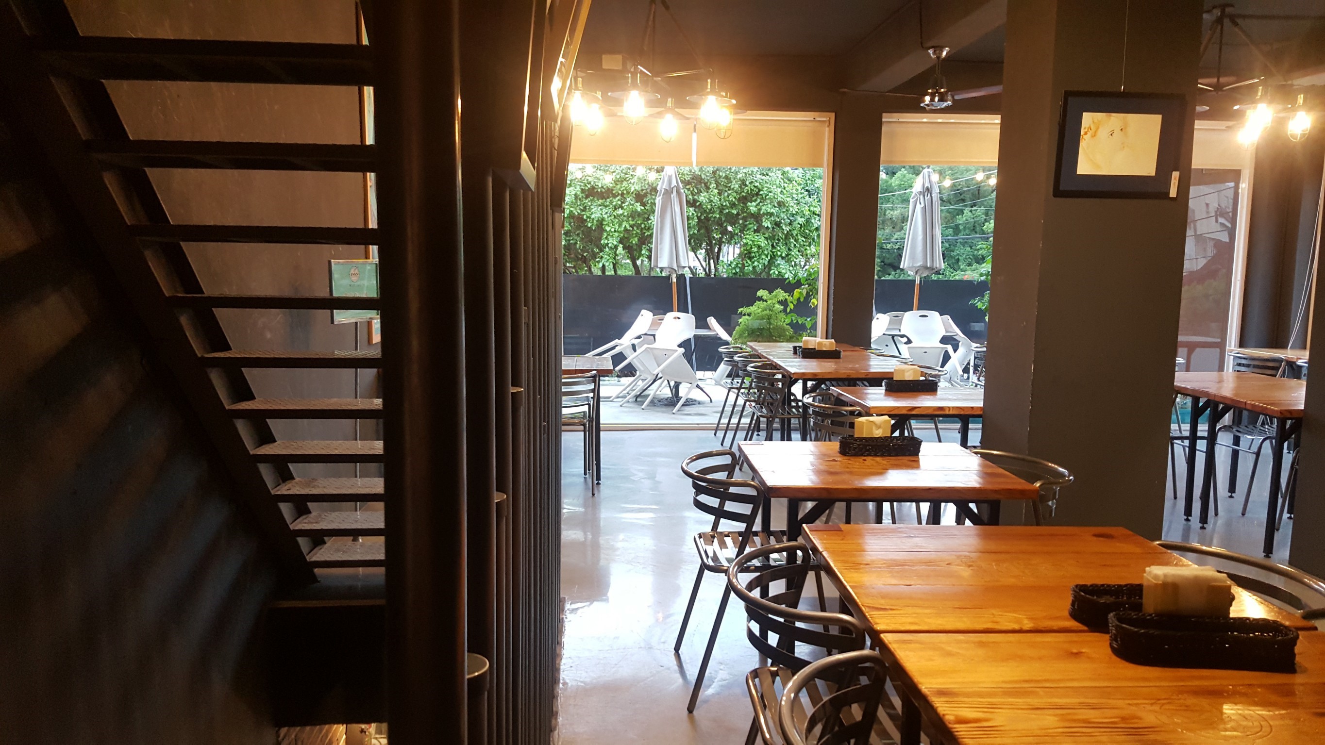 二樓跟一樓一樣,都用大量的落地窗,將三角窗的採光及街景,全都吸收進來,使得空間感更為寬闊,二樓還有戶外座位區,應該可以偷偷給菸癮者(((又是癮,哈哈.
