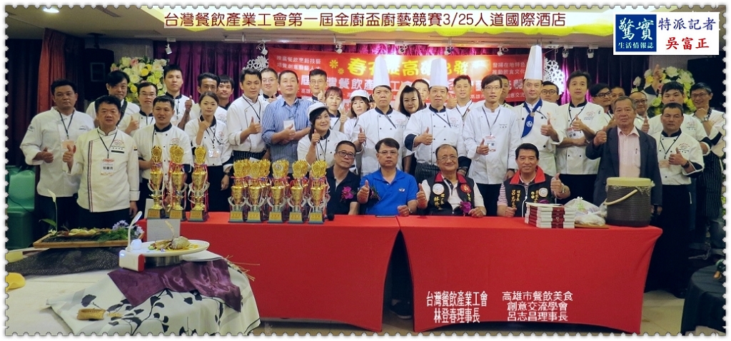 2019年「第一屆高雄金廚盃廚藝交流競賽」3/25於人道國際酒店隆重登場,台灣餐飲產業工會林登春理事長、高雄市餐飲美食創意交流學會呂志昌理事長聯合主辦此次活動,