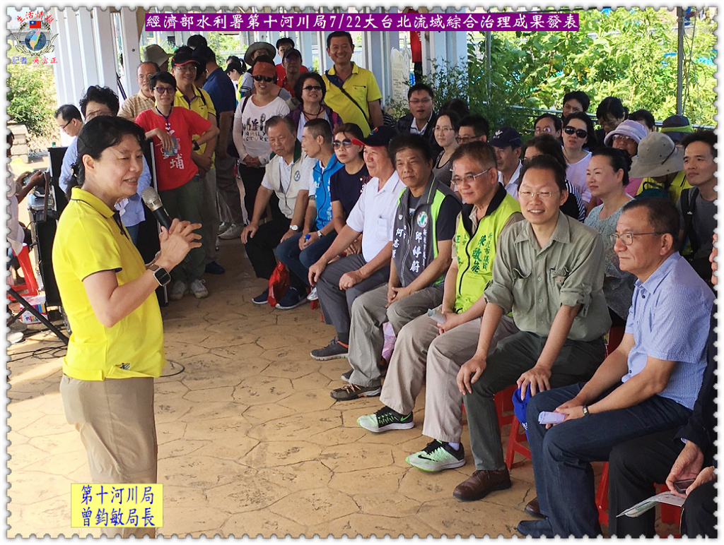曾鈞敏局長表示,水岸是城市資產,淡水河的治理規劃,牽動大台北地區的城市經濟發展,形塑淡水河藍帶區域藝術文化,與生態環境共生的永續環境。第十河川局轄區包括跨省市河川淡水河、中央管河川磺溪及鶯歌溪、塔寮坑溪、深澳坑溪、大內坑溪四條中央管區域排水,與新北市及基隆市沿岸海堤整建、治理、管理,範圍涵蓋大台北地區,藉由流域綜合治理工程的辦理,提高沿岸居民生命財產的安全保障,塑造優質安全的水岸環境,透過逕流分擔、出流管制或非工程措施的方式來推動流域綜合治理,跨領域、跨單位協調整合、全面推行,已達到防減災、提升地方經濟、保護生態環境及安定社會的效益。未來前瞻基礎建設計畫,水利建設將以「魅力水岸」為目標,「營造水岸融合,提升環境優化」、「恢復自然健康河川,建構永續之生活環境」、「營造友善海堤空間,展現優質海岸環境」為願景,推動結合生態保育,辦理河川生態廊道、排水景觀營造、滯洪濕地公園、海岸風華再現等工作,創造永續水環境。