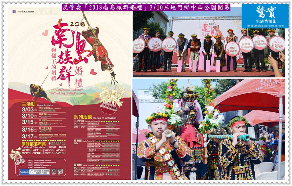 茂管處「2018南島族群婚禮」3/10三地門鄉中山公園開幕