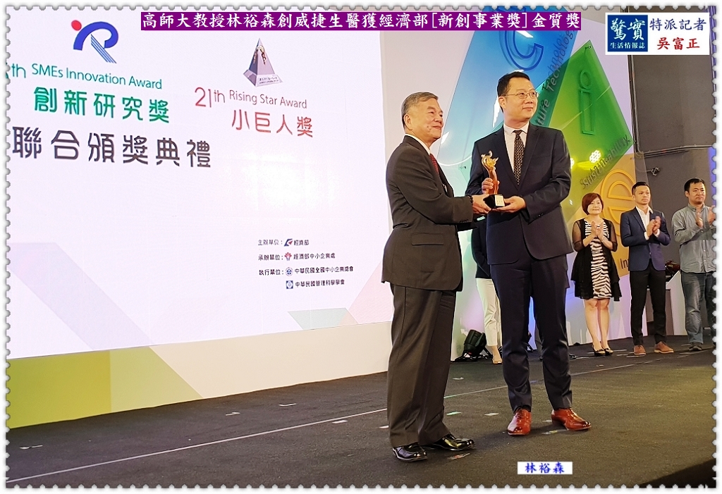 國立高雄師範大學師生與畢業校友所創立的威捷生物醫學股份有限公司,於9/27經濟部第17屆「新創事業獎」頒獎典禮中,榮獲「知識服務業組」金質獎,創辦人兼執行長林裕森博士領獎接受表揚,該獎項由經濟部沈榮津部長頒發金質獎一座及獎金15萬元。新創事業獎是經濟部為營造優質創業環境,形塑台灣成為創業型社會,經濟部中小企業處辦理「新創事業獎」選拔活動,鼓勵青年、女性及熟齡創業者,發展具備優質營運模式之新創事業,樹立成功典範,提振創業家精神,帶動國內創新創業之風氣,為經濟注入活水 。