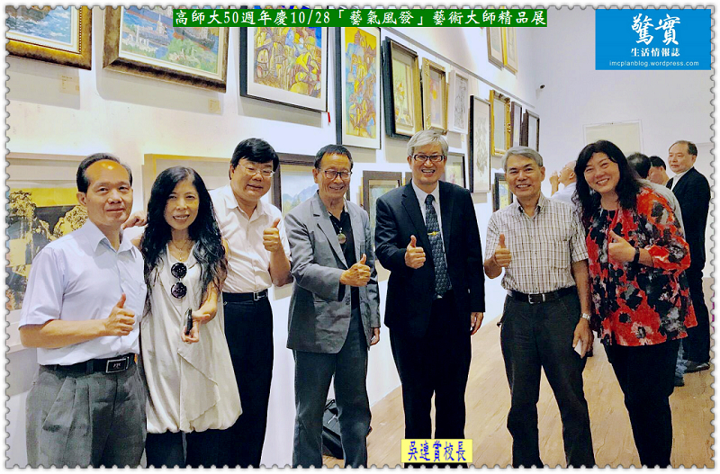 10/28下午4點藝術大師精品展,計有臺灣藝術研究院林富男院長、名畫家許一男及曾文忠、帕莎蒂娜國際餐飲集團許正吉總裁等近百位愛好藝人士共襄盛舉。主辦人藝術學院姚村雄院長表示,募集50位藝術大師的140幅藝術精品名畫,非常值得收藏,目前已義賣出65幅,展出時間到11/14,歡迎喜好藝術的朋友們,把握時間到高師大116藝術中心賞購。