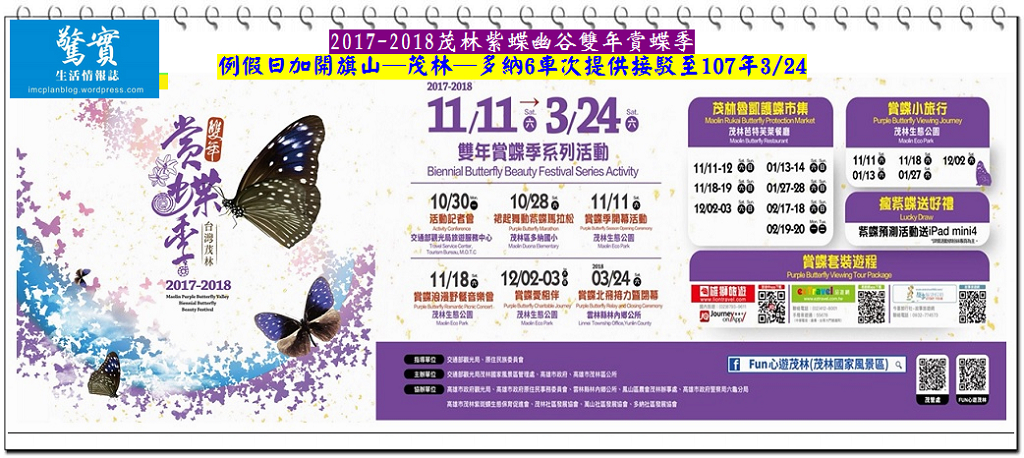 【2017茂林紫蝶幽谷雙年賞蝶季 例假日加開旗山─茂林─多納6車次提供接駁至107年3/24