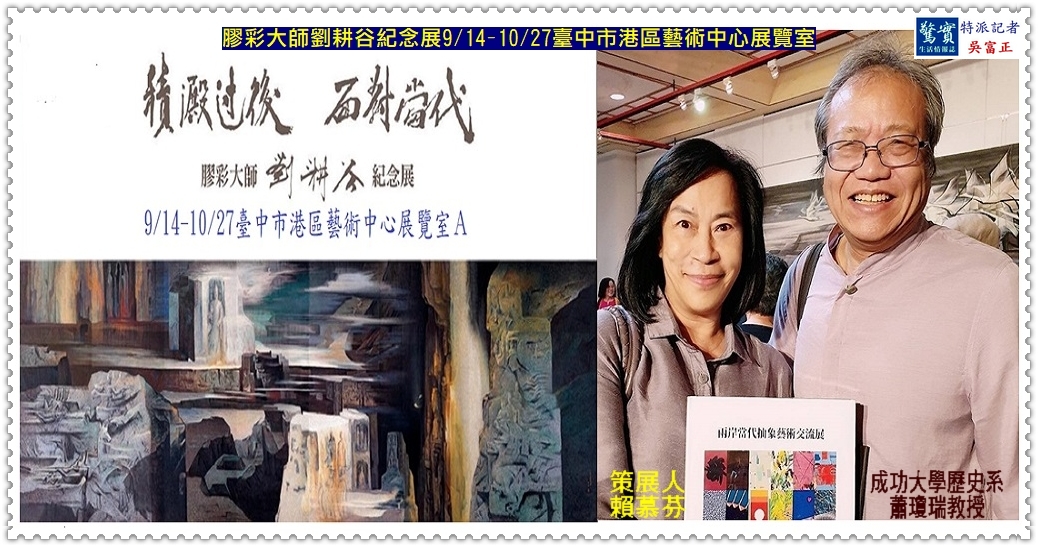 「積澱過後、面對當代–膠彩大師劉耕谷紀念展」9/14至10/27於臺中市港區藝術中心展覽室A展出,這次展出的作品為劉耕谷各時期的代表作,共五十餘幅大型膠彩原創作品及三十餘幅系列作品。9/14舉行開幕式,眾賓雲集,出席的有台中市府文化局張大春局長、文化局施純福副局長、前總統府資政廖了以、成功大學歷史系蕭瓊瑞教授、文化大學美術系李錫佳教授、臺灣膠彩畫協會廖瑞芬理事長、台灣綠水畫會范素鑾理事長、東海大學美術系詹前裕教授、國立臺灣藝術大學徐子涵助理教授、策展人賴慕芬、抽象畫藝評家紀向、日本形象畫會蔡孟玲會長、多位藝術家及劉耕谷夫人劉黃美惠,長女劉玲利與長子劉耀中。