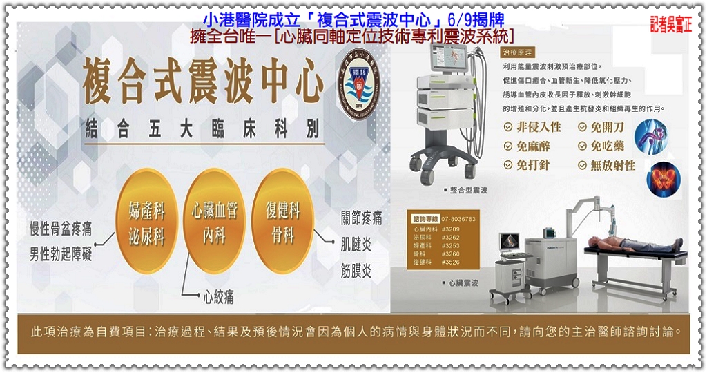 【小港醫院】成立「複合式震波中心」6/9揭牌,公開「全台第一台」心臟同軸定位技術專利震波系統。