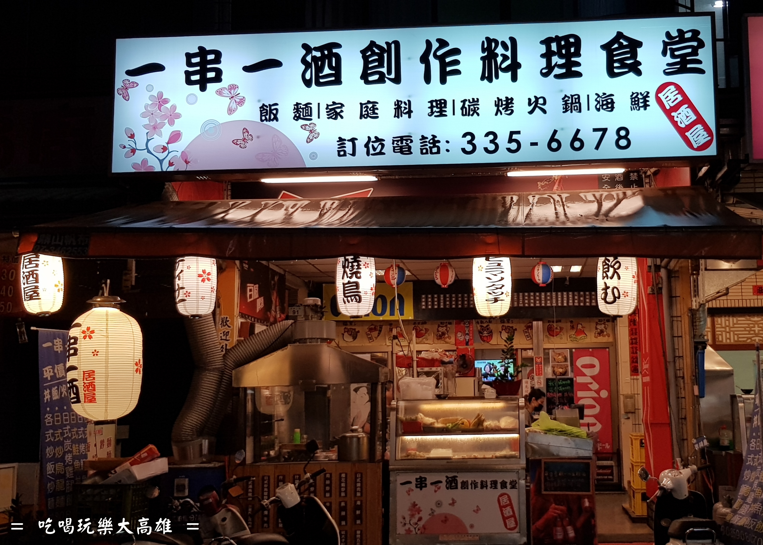 位於高雄市忠孝商圈內,唯一的小缺點是必須找好停車位,不過晚上七點後,鄰近的店家也休息,也方便臨時停車哦。雖然網站公告是兩點,老闆有時任性地提早會營業到半夜一點。一串一酒創作料理食堂,固定星期一公休喔!老闆被突擊,手寫招牌著實沒特別處理。哈!