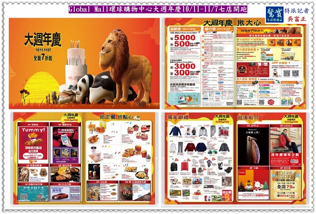 Global Mall 環球購物中心~大週年慶全台7店將於10/11~11/7開跑,今年Global Mall祭出年度滿仟送佰最高消費回饋16%,還有14家銀行禮等回饋活動。