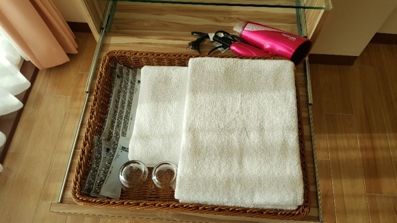 乾乾淨淨的環境與床鋪是基本配備,但是看到備品我幾乎驚呼了出來,看到了負離子吹風機耶!每次出差旅行,房間配備的吹風機都無法滿足女孩兒的需求。我跟東利說:你相信嗎?我真的背了自己的吹風機,飄洋過海來到小琉球…真的!是真的~