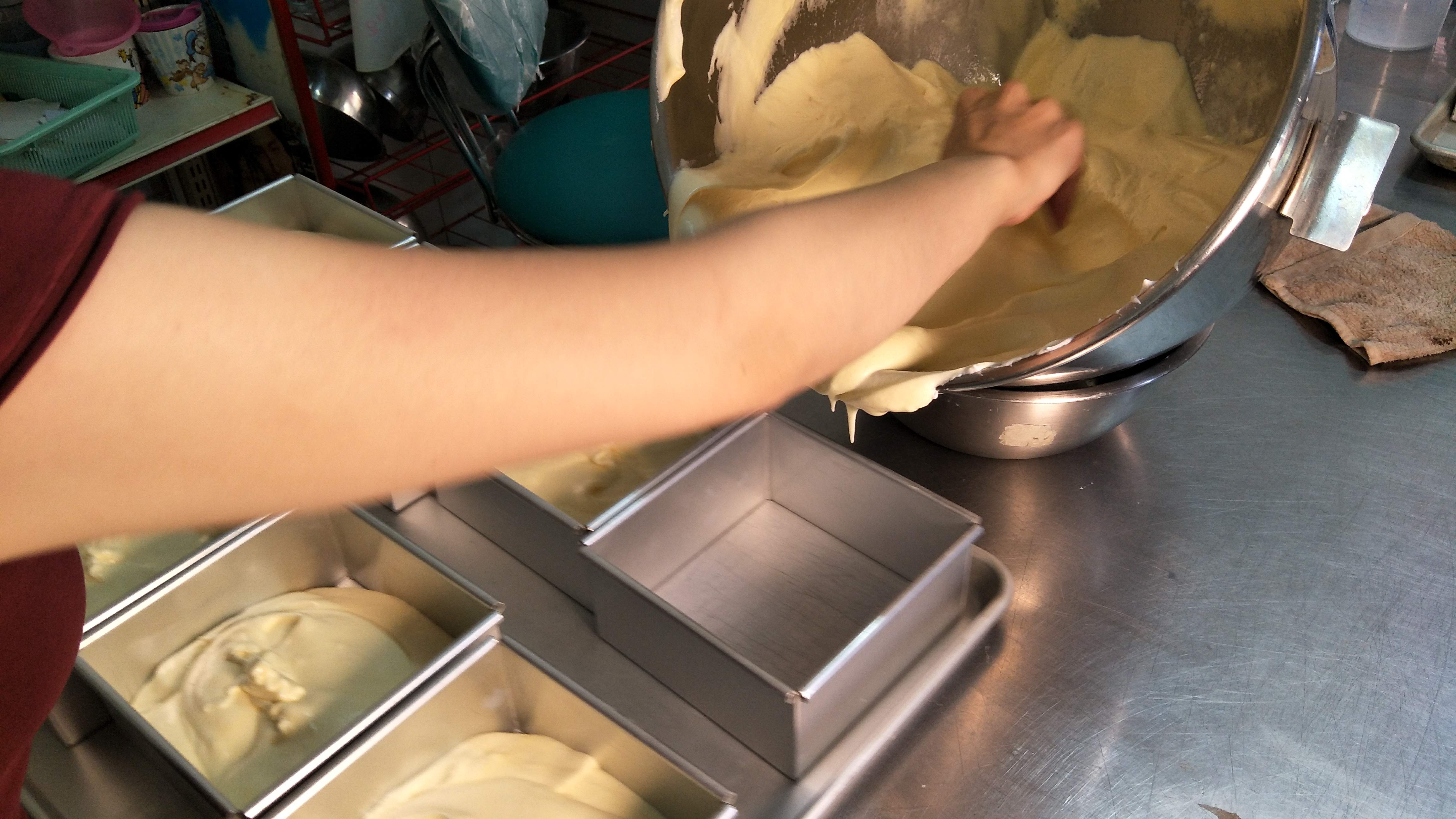 平常不接受人參觀的,我出示溫柔的惡勢力,逼她乖乖地就範,其實是我央求跪求懇求,三求老闆娘讓我進去拍攝的呢!!!讓我一探究竟,真的是採用雞蛋與豆漿所做成的蛋糕!!!