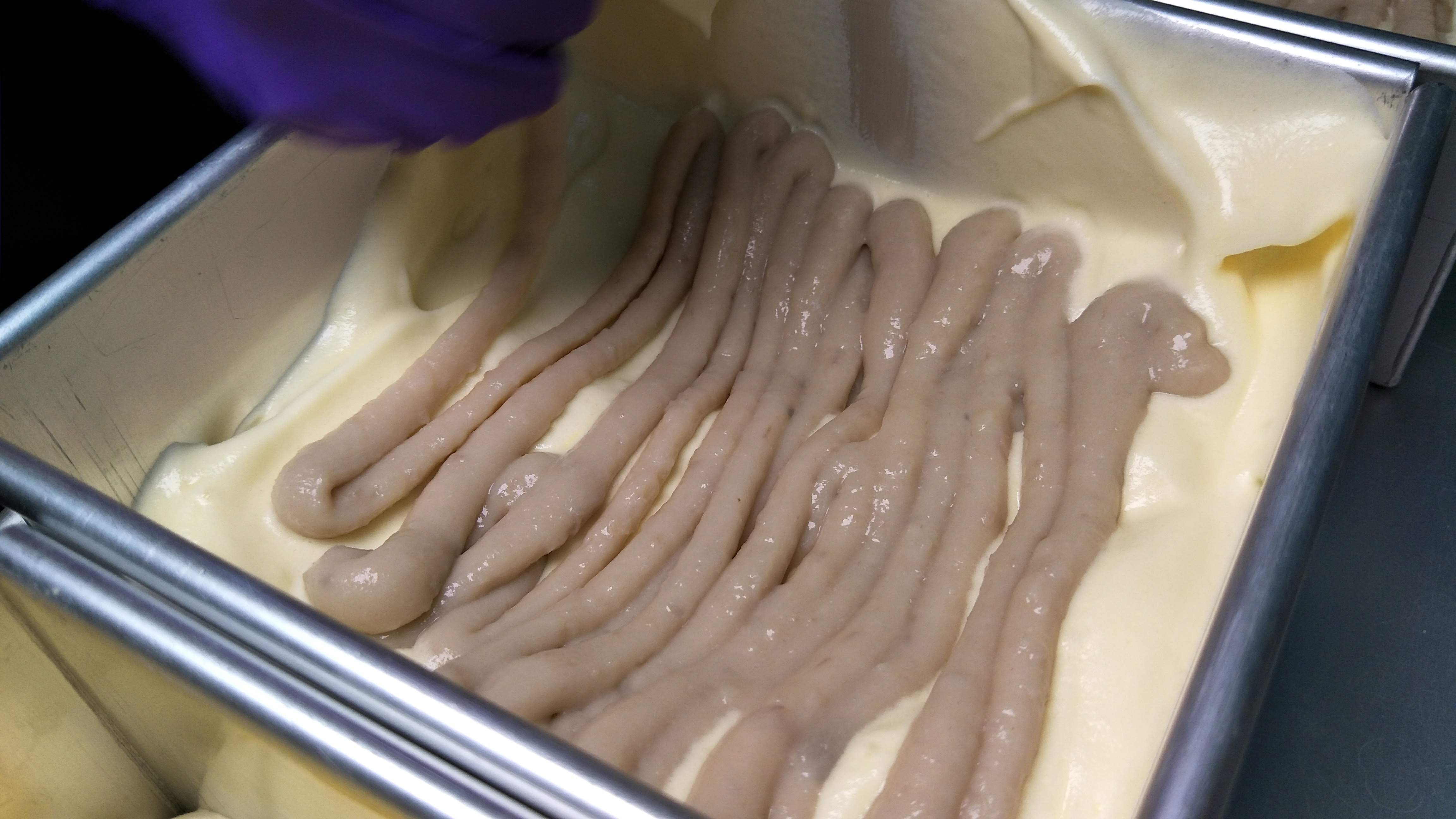 看到沒,各位看倌們,這個【芋仔很濃】蛋糕當中的芋泥,是老闆娘自己親自熬煮,絕無添加人工食材的呢,芋泥綿密有香氣。