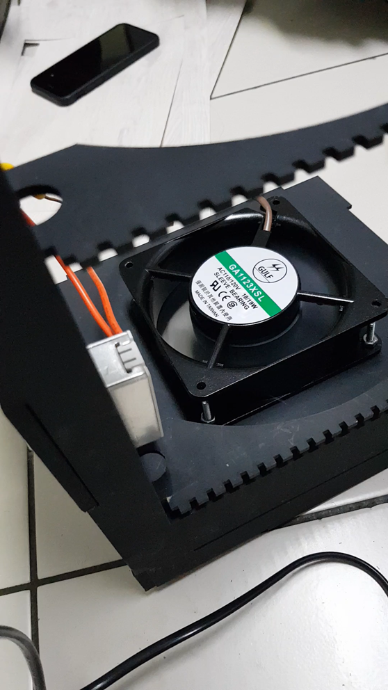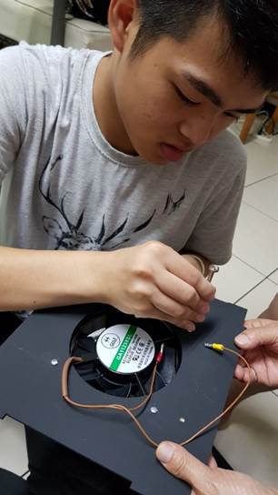 我們經歷了大約快兩個小時吧,中間有停下來喘口氣喝個茶。母子兩個人在客廳可笑翻了,是玩得蠻開心的。組裝起來以後接上電源,啟動開關,確認風扇能夠正常運行。等待啟動的那一刻兩個人屏住氣息…動了!太棒了!真的很令人感動!